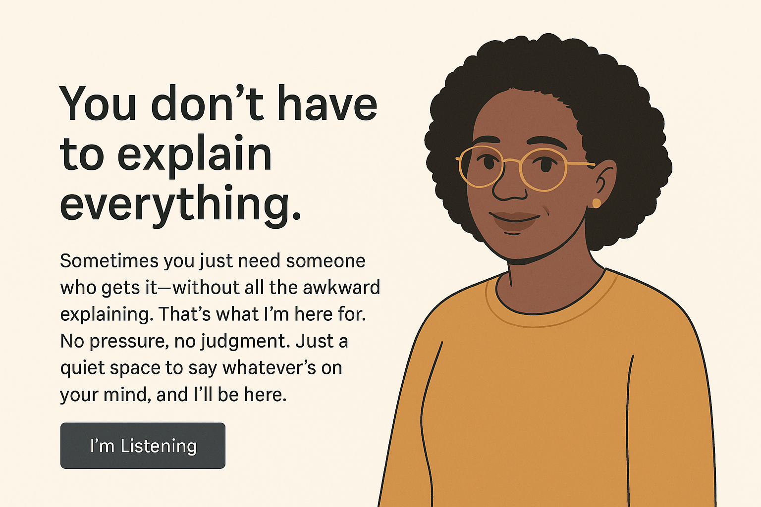 Nope — Auntie Niqu isn’t therapy. She’s that one person you can always talk to, even when you don’t feel like explaining it all. Think of it like emotional first aid, not clinical help.